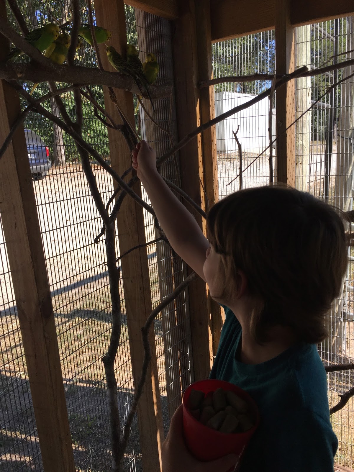 Trusten is feeding the birds a peanut butter and seed snack on a stick here. He really seemed to enjoy his time feeding the birds. :-)
