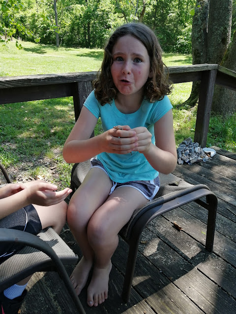 Elizabeth caught her first lizard. Only Jaden William of my other children has caught a lizard, and he's caught a few in his day, as I've posted over the last eleven and a half years. She got Olivia to hold it, and it was so funny—I wish I'd have captured it on video—to hear Elizabeth tell Olivia something like, "See, you don't have to be frightened" and soothing and instructing Olivia further.